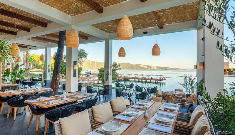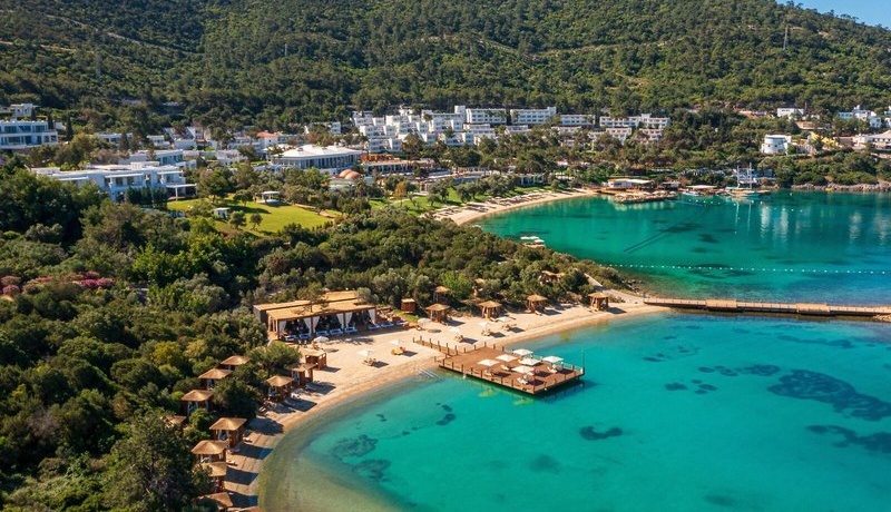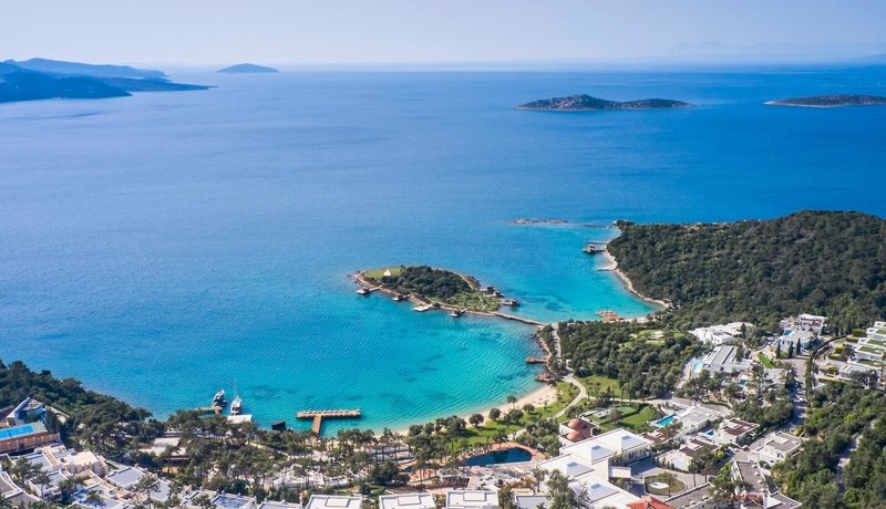 Die weitläufige, terrassenförmig angelegte Anlage fügt sich harmonisch in die grüne Hügellandschaft ein und liegt direkt an der hauseigenen Badebucht mit vorgelagerter kleiner Insel. Das lebendige Zentrum von Bodrum mit seiner berühmten mittelalterlichen Burg Kalesi erreichen Sie nach etwa 10 km bequem mit dem Dolmuş. Der Flughafen Bodrum ist rund 25 km entfernt, die Transferzeit beträgt ca. 30 Minuten.