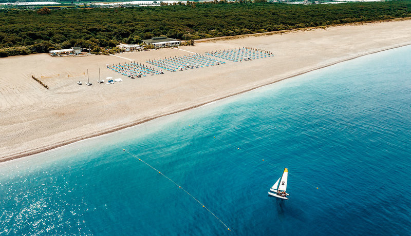• Ca. 400 m zum Strand durch einen schattigen, naturbelassenden Pinienhain sowie sonnengeschützter Bereich am Strand