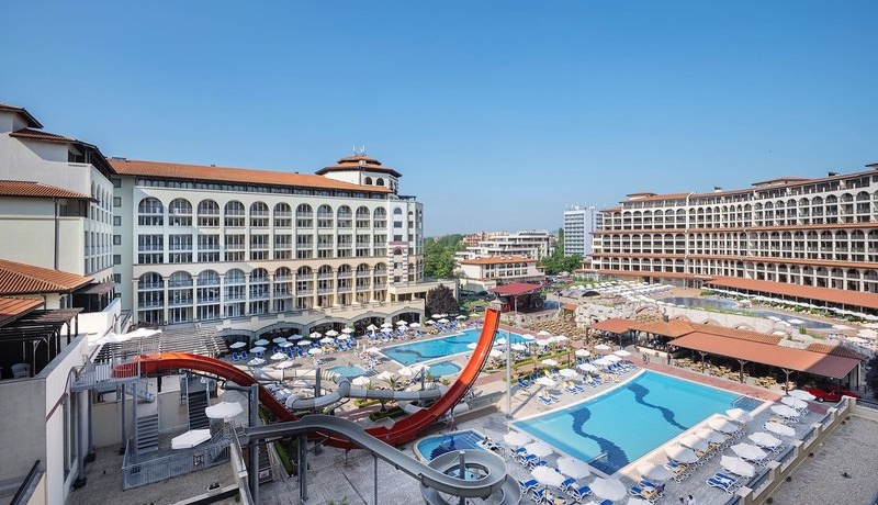 Mitten am lebhaften Sonnenstrand und nur rund 100 m vom feinsandigen Strand entfernt, erwartet Sie dieses beliebte 4-Sterne-Hotel mit idealen Voraussetzungen für einen entspannten Badeurlaub. Restaurants, Bars und Geschäfte befinden sich direkt in der Umgebung, ein hoteleigener Strandabschnitt mit Beachbar (saisonal) bietet zusätzlichen Komfort. Der weitläufige Komplex überzeugt durch drei Außenpools mit Mini-Aqua-Park, Kinderpools, Hallenbad und abwechslungsreiche Animation für die ganze Familie. Im Rahmen von All Inclusive genießen Sie vielfältige Buffets mit Show-Cooking und Themenabenden sowie internationale Spezialitätenrestaurants und mehrere Bars. Geräumige Familienzimmer und ein umfangreiches Kinderprogramm machen das Hotel zur idealen Wahl für einen abwechslungsreichen Strandurlaub.