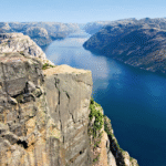 Fjorde Norwegens. Sie fahren mit dem Schiff von den sandigen Stränden der Küstenlandschaft Jæren bis in die hohen Gebirge des Gebiets Ryfilke, die den Lysefjord umrahmen. Unterwegs beeindrucken steile Klippen und bizarre Felsformationen, imposante Wasserfälle, tiefblaue Fjorde und grüne Inseln.