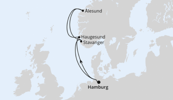 Erleben Sie Norwegen von seiner schönsten Seite – entspannt an Bord der AIDAperla. Diese abwechslungsreiche Kreuzfahrt verbindet das maritime Flair Hamburgs mit den spektakulären Landschaften der norwegischen Fjorde. Freuen Sie sich auf charmante Küstenstädte wie Haugesund, Ålesund und Stavanger, beeindruckende Naturpanoramen mit steilen Felswänden, tiefblauen Fjorden und Wasserfällen sowie erholsame Seetage voller Genuss und Unterhaltung. An Bord genießen Sie das typische AIDA Lebensgefühl: modern, weltoffen und unkompliziert – perfekt für unvergessliche Urlaubsmomente auf See.