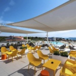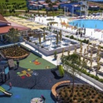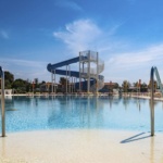 Zum Außenbereich des im mediterranen Stil gestalteten Hotels mit Wasserpark und Wasserrutsche gehört ein Frischwasser-Pool mit einem separaten Kinderbecken (geöffnet von Juni bis September). Hier stehen Sonnenliegen und Sonnenschirme gegen Gebühr zur Verfügung. Erfrischende Getränke können direkt an der Poolbar eingenommen werden (geöffnet von 10:00 – 18:00).