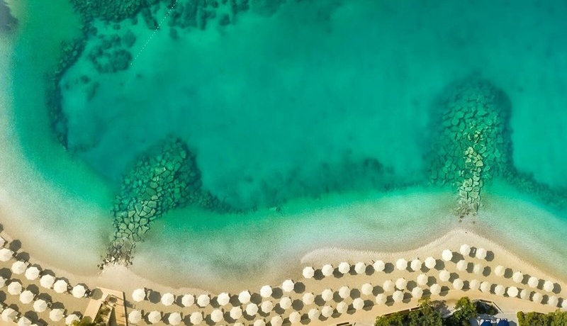 • Strand „Mulini Beach“: Kies, flach abfallend, Bucht, öffentlich mit eigenem Hotelabschnitt, Liegen: ohne Gebühr, Sonnenschirme: ohne Gebühr