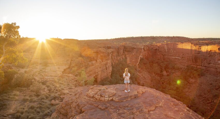 Vormittags fahren wir los zu einem Abstecher in das einzigartige Bergland des Western MacDonnell National Park. Dort tauchen Sie ein in bezaubernde Schluchten, wie Standley Chasm und Simpsons Gap, wo im Wüstenklima, vor schroffer Felskulisse, ein wenig Wasser üppige Vegetation entfacht. Die Fahrt durch die Weite des Red Centre bietet unvergessliche Ansichten der fast menschenleeren Wildnis. Im Watarrka National Park wartet eine betörende Wüstenschönheit auf Sie: die im Abendlicht leuchtend rote Felskulisse des Kings Canyon imponiert mit um die 300 m hohen, zerklüfteten Steilwänden. Wo Wurzeln noch Wasser finden, begrünt überraschend üppige Vegetation die grandiose Szenerie. Auf einer Kurzwanderung (ca. 45 min) am Canyongrund bekommen Sie einen ersten Eindruck und können entscheiden, ob Sie am nächsten Morgen für eine längere Rundwanderung gerüstet sind.