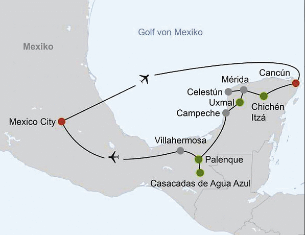 • Ein Teil der Rundreise wird zusammen mit der Yucatán-Rundreise durchgeführt
