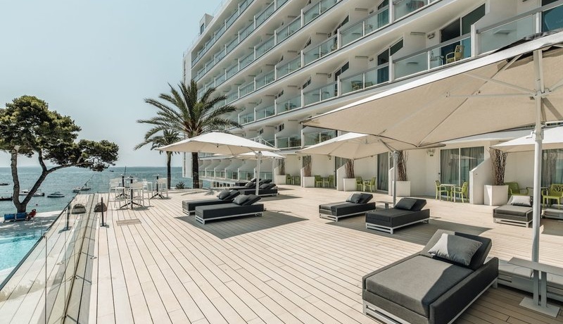 Lage: Direkt am Sandstrand der Playa d’en Bossa. Zahlreiche Einkaufs- und Unterhaltungsmöglichkeiten befinden sich in der unmittelbaren Umgebung. Die Altstadt und der Hafen von Ibiza-Stadt sind ca. 2,2 km entfernt, es gibt regelmäßige Bus- und Bootsverbindungen. Der Flughafen liegt ca. 6 km entfernt.