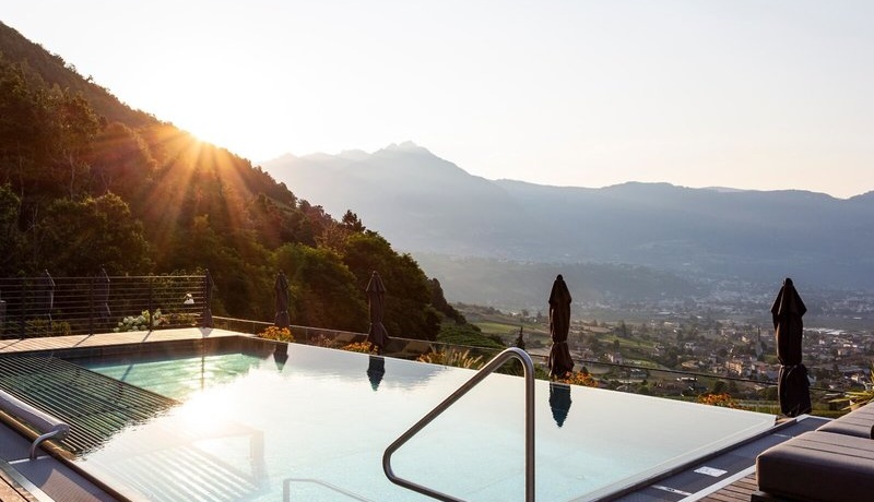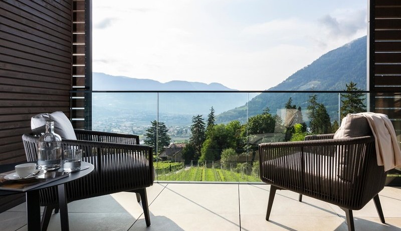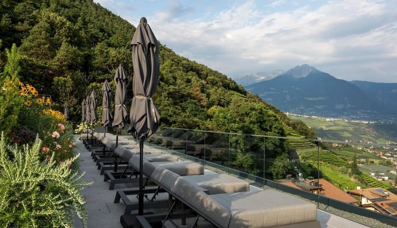 Lage & Umgebung Umgeben von den Obstgärten in Algund ist das luxuriöse Hotel eingerahmt von der umwerfenden Berglandschaft Südtirols. Es befindet sich direkt am Waalweg, der durch traumhafte Natur führt. Etwa 7 km sind es zum malerischen Partschinser Wasserfall und etwa 5 km bis Meran.