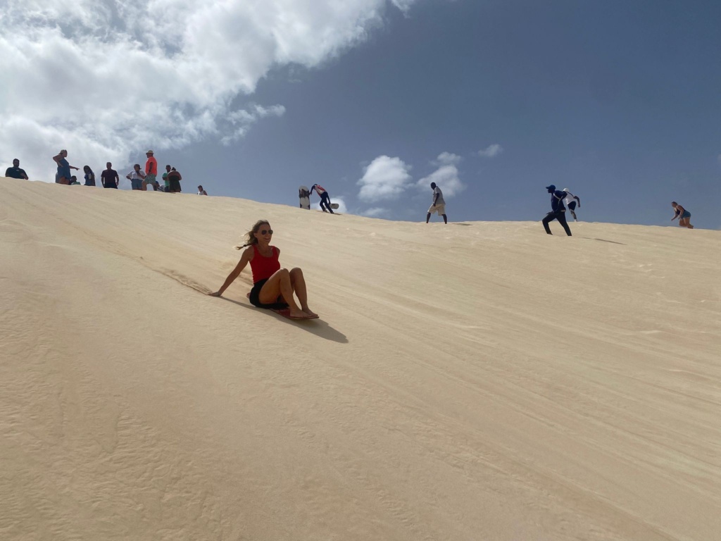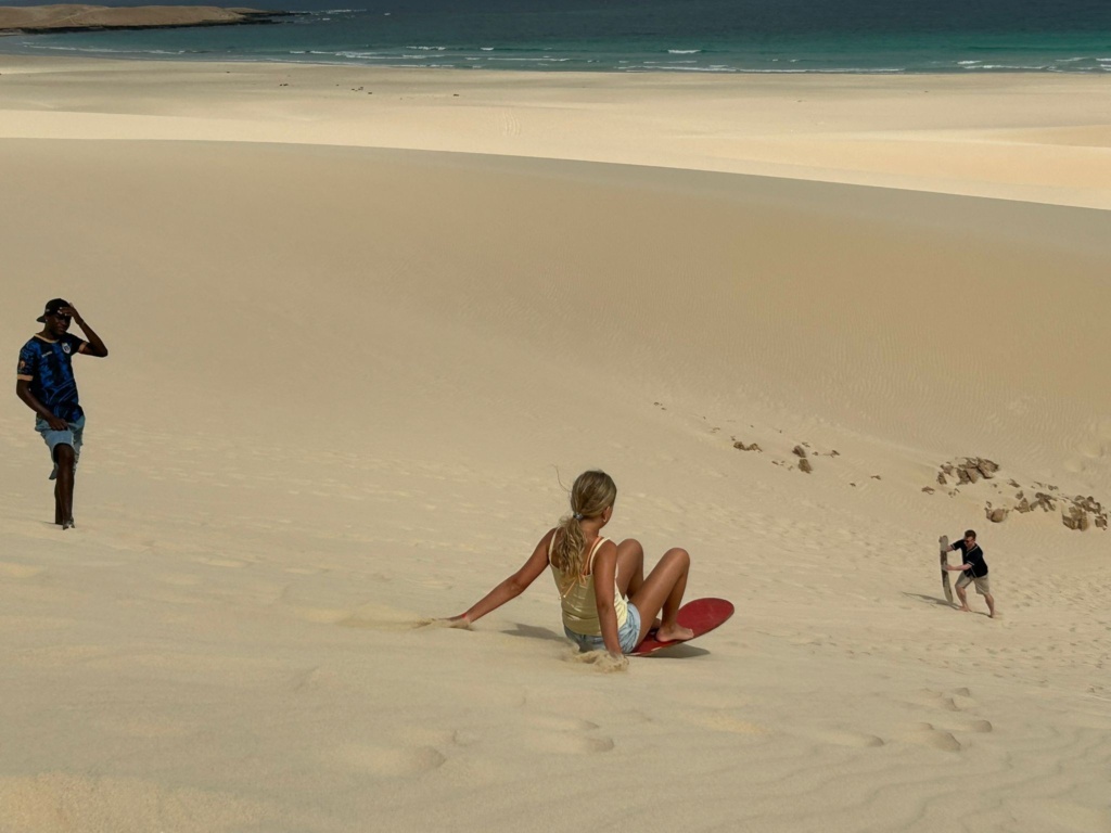 Wir haben mit einem einheimischen Guide ein paar schöne Ausflüge unternommen, die uns an atemberaubende Strände, wie z.B. Santa Monica im Süden, die Viana- Wüste, zum 1968 gesunkenen Schiffswrack Cabo de Santa Maria, zu einer Kalksteinhöhle, uvm. gebracht haben.