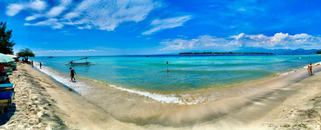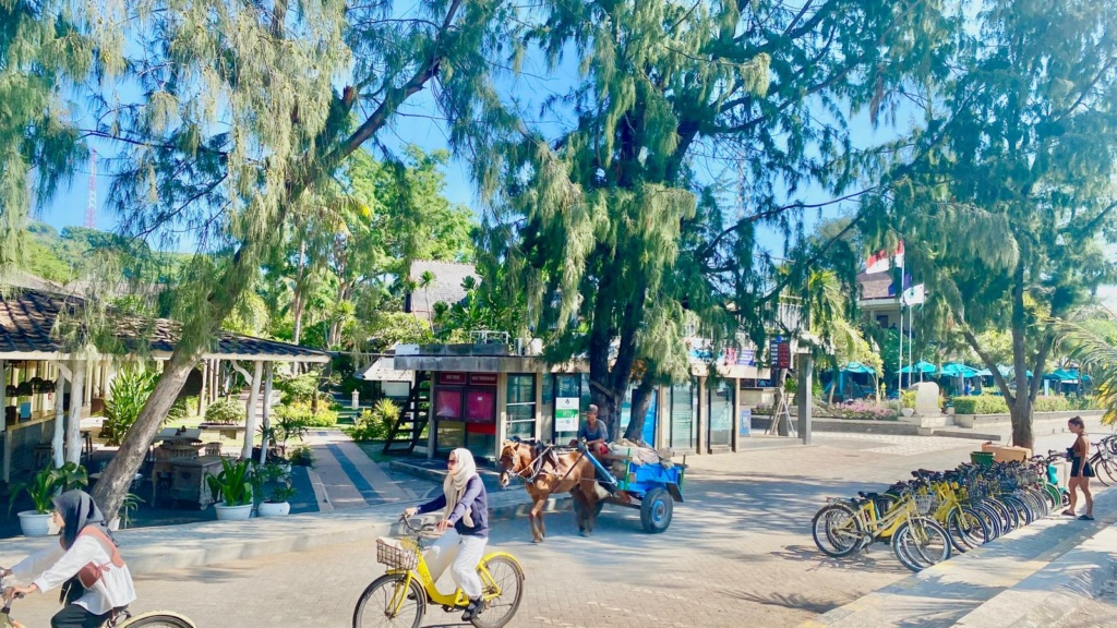 Gili Trawangan war auch eine tolle Erfahrung. Wir waren hier in der Nebensaison und es war doch schon einiges los. Das Hotel lag 5 Minuten zu Fuß vom Hafen entfernt und es war hier am Abend dann schon ruhiger. Das Zimmer und die Anlage waren sehr schön. Frühstück würde man keines benötigen (das Buffet war jetzt nicht so toll), denn es gibt rund um den Hafen tolle Frühstücks Cafés. Die Insel kann man in gut einer Stunde gemütlich mit dem Fahrrad umrunden und man kann viele verschiedene tolle Strandabschnitte erreichen. Zurzeit war bei unserem Hotel eine kleine Baustelle und rund um die Insel wird die Straße neu gepflastert. Das Personal war jetzt ruhiger und nicht so aufmerksam wie in Bali und Nusa Penida, aber für uns kein Problem.