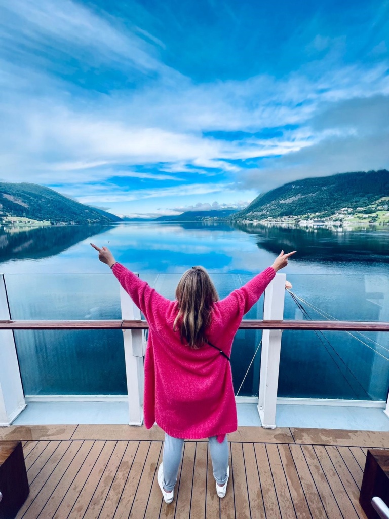 ABER für uns war nicht nur das Schiff wichtig, sondern auch die Route. Der Norden stand schon lange auf meiner To-do-Liste. Ich war und bin begeistert von der Schönheit Norwegens, dem Naturschauspiel an den Küsten und Fjorden, den lustigen Norwegern, die immer gut gelaunt sind und ständig einen lustigen Spruch auf Lager haben, das Wetter, das in Norwegen nie schlecht ist, da sowohl der Sonnenschein als auch der Regen mit seinen verschiedenen Farbfacetten einfach wunderschön ist.