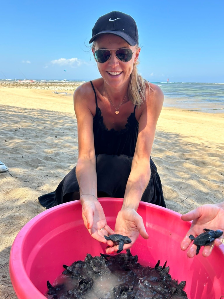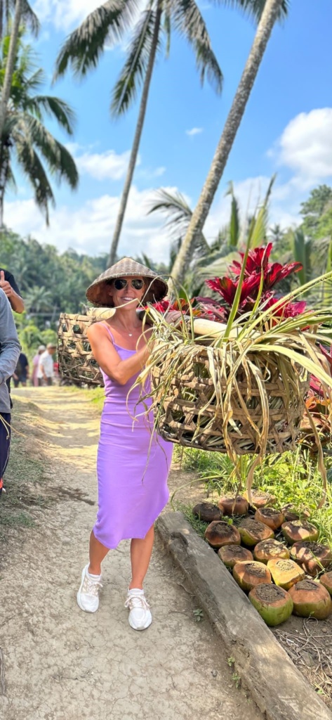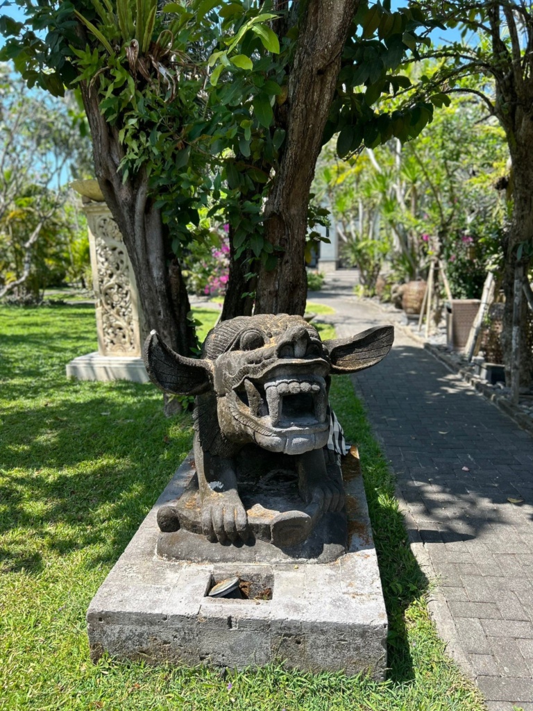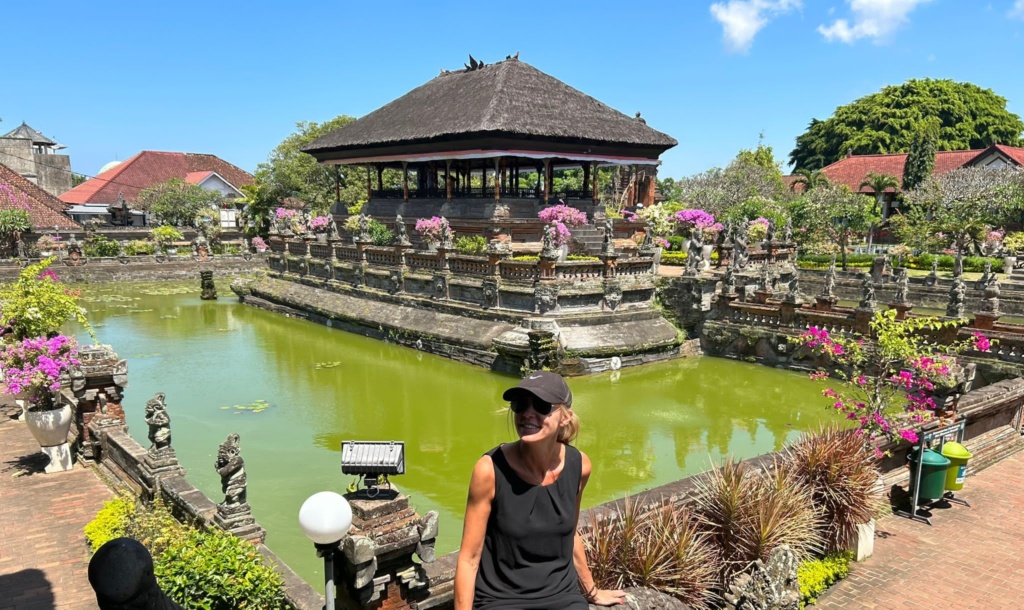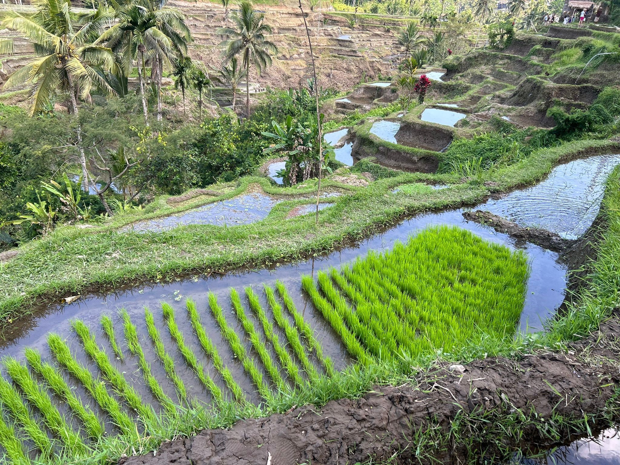 Am 24.8. 2023 bin ich mit meinem Mann und unserer 10-jährigen Tochter über Singapur nach Bali geflogen. Bei der Einreise haben wir problemlos unser „Visa on arrival“ und die „electronic customer declaration“ erledigt. Nachdem wir am Flughafen gleich unser Geld umgetauscht hatten, waren wir Millionäre… 😉 leider nur in Rupien, denn 100 € sind nämlich 1,6 Mio. Rupien. Trotz angenehmen Fluges tat uns nach 15-stündiger Anreise eine 4-tägige Akklimatisierung im wunderschönen Puri Santrian Hotel**** in Sanur gut. Die Anlage ist im balinesischen Stil gehalten und direkt am belebten, aber nicht überfüllten Strand. Das Meer ist ruhig und flach, daher sehr gut für Kinder zum Plantschen geeignet. Schwimmen geht allerdings nur bei Flut. Zwischen Hotels und Meer zieht sich ein langer Fuß-/Radweg entlang, welcher von unzähligen Bars, Cafés und Verkaufsbuden gesäumt ist. Am Strand durften wir einem wundervollen Naturschauspiel beiwohnen: Schildkrötenbabys sind geschlüpft und wurden von einer Hilfsorganisation in eine Aufzuchtstation gebracht. In diesen 4 Tagen bestand unser Tagesablauf aus kostenlos im Hotel angebotener Yogastunde um 7h morgens, Relaxen am Pool, nachmittags Radtour (Räder sind ebenfalls kostenlos im Hotel erhältlich) und abends gemütlich, gut und sehr günstig am Strand essen. Dazwischen ließen wir uns noch täglich massieren (1 Std. um nur 6 €).