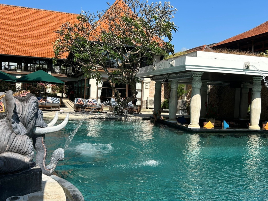 Wir haben uns für das Hard Rock Hotel Bali entschieden, weil es hier nach der anstrengenden Rundreise für unsere Tochter eine sehr große Poolanlage mit Rutschen und Animationsprogramm gab. Nach unseren beschaulichen, kleinen, traditionellen Hotels davor mussten wir den Schock bzgl. der Größe und der Menschenmenge erst mal verdauen, aber dann war es wirklich ein perfekter Ausgangspunkt für unsere täglichen Strandbesuche mit Surfkursen. Kuta ist der Gegenpol zum ruhigen Sanur, wo wir unsere Reise gestartet hatten.