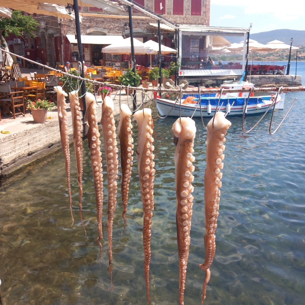 Auch ist es fast ein „Muss“, die Insel mit einem Mietwagen zu erkunden, denn sie hat so viel zu bieten. Lesbos ist die drittgrößte griechische Insel und ist übersät mit Olivenbäumen. Natürlich hatten wir Gelegenheit, das ausgezeichnete Olivenöl in einem Herstellerbetrieb zu verkosten.
