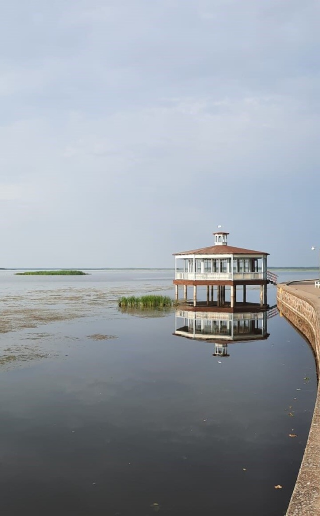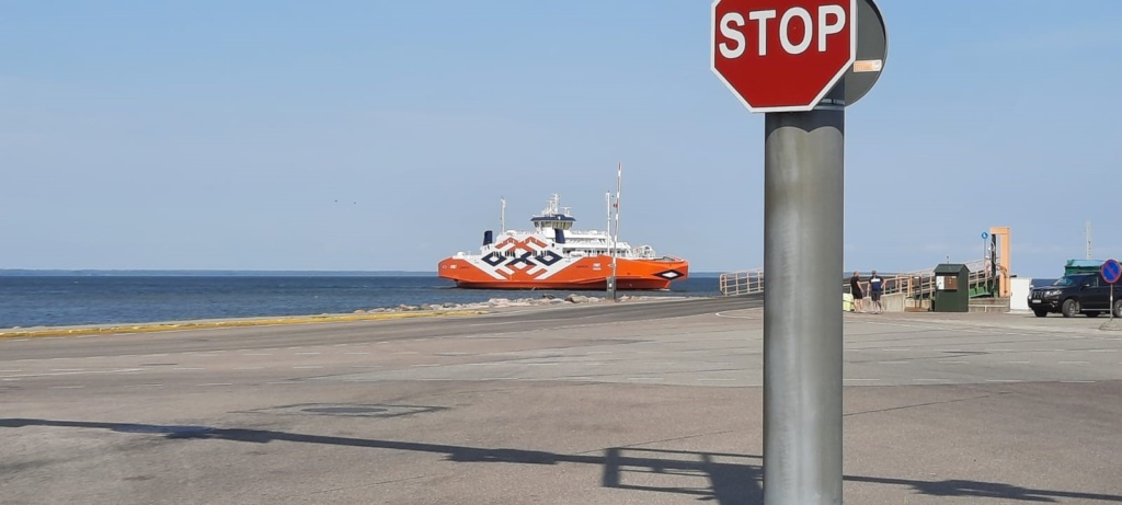 Am zweiten Tag fuhren wir, nachdem wir uns am Frühstücksbuffet stärken konnten, an den nur ca. 1 Stunde entfernten Hafen von Virtsu. Von dort ging es mit der Fähre auf die Insel Kuivastu und über eine Verbindungsstraße übers Meer auf die nächste Insel Saaremaa – obligatorischer Fotostopp durfte natürlich nicht fehlen!